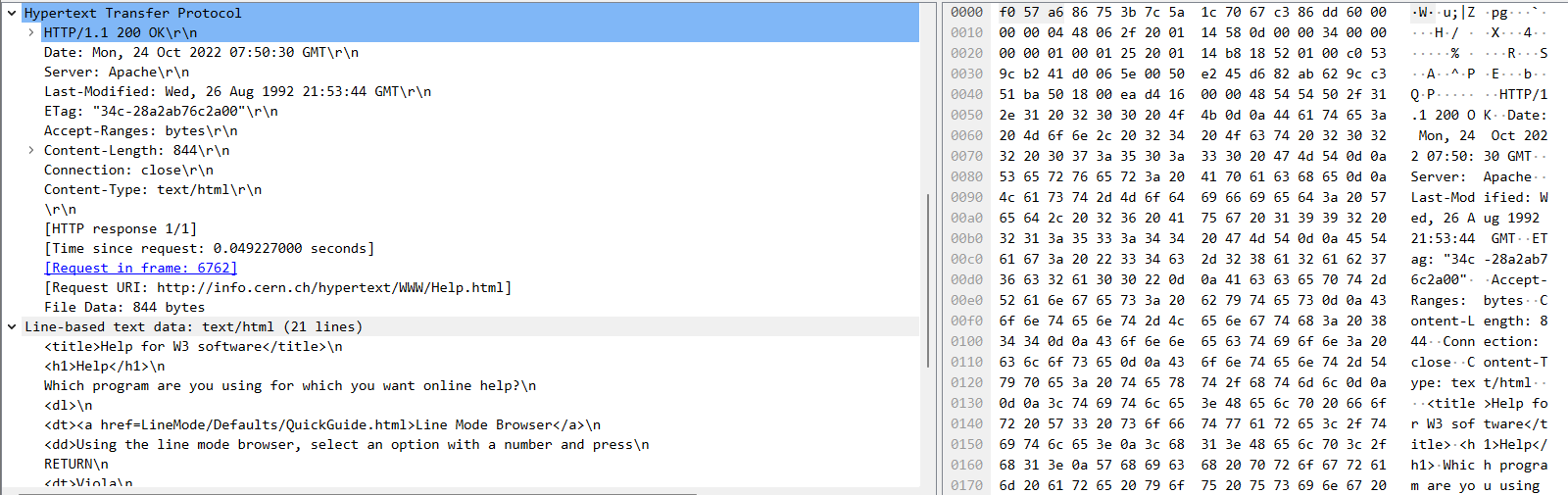 Seuraavaksi voimme ottaa yhteyden selaimella johonkin http-serveriin, kuten esimerkiksi maailman ensimmäiseen www-sivuun, joka sijaitsee nykyään mm. tässä osoitteessa