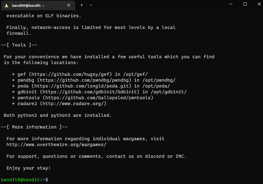 ssh bandit0@bandit.labs.overthewire.org -p 2220