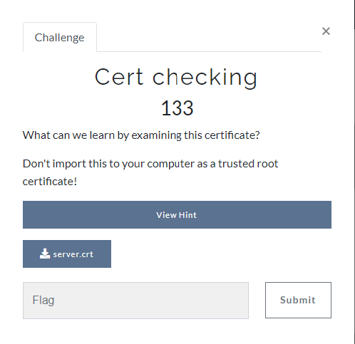 Valitsin ratkaistavaksi tehtäväksi tehtävän “Cert Checking”, joka on melko helppo tehtävä.