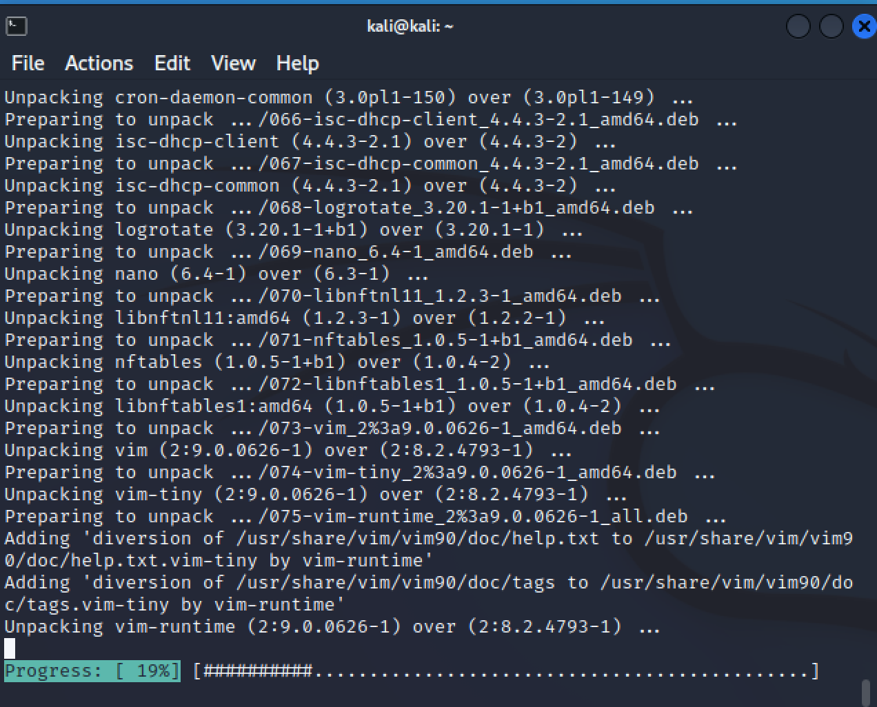 varsinkin täysin uuden Kali-asennuksen kanssa tässä menee hetki