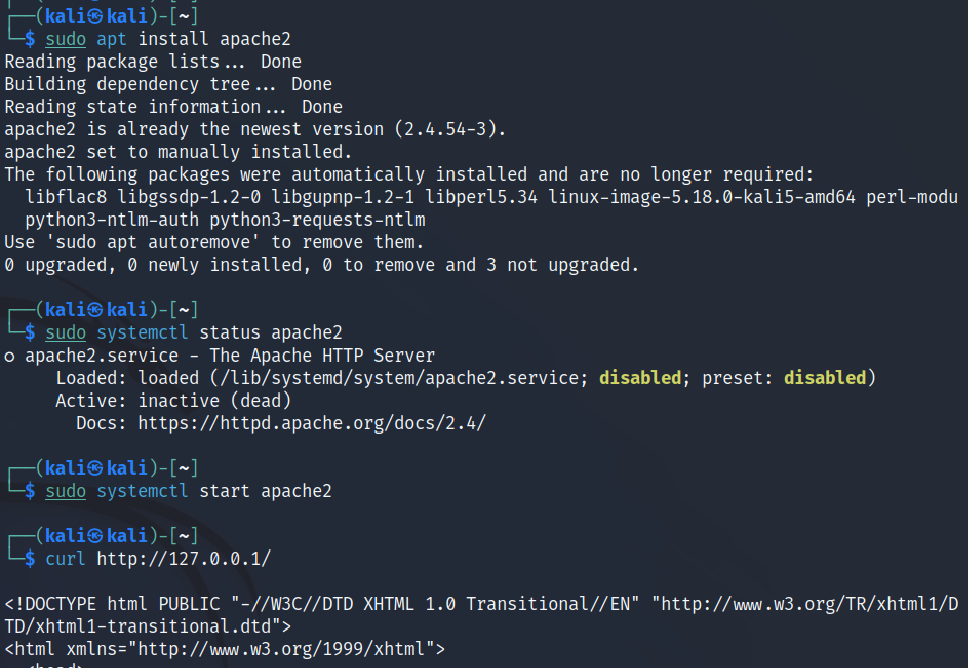 sudo systemctl start apache2