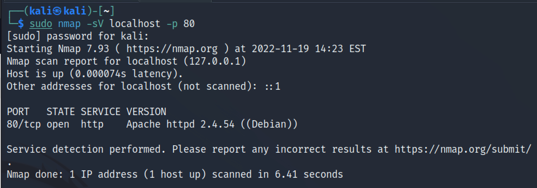 Tutkitaan, kuinka helppoa tai vaikeaa nmapin skannauksen tunnistaminen on palvelimelta. Asennetaan tätä varten Apache-webpalvelin.