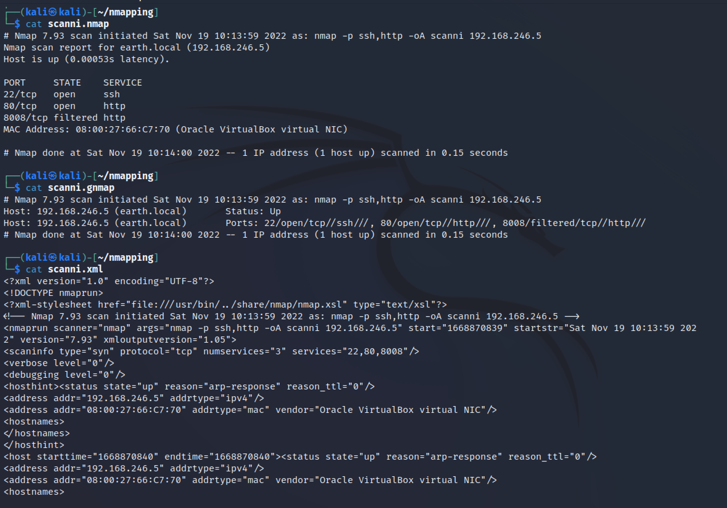 -oA flagilla saadaan nmap tallentamaan tulokset kaikissa muodoissa, joita on kolme: