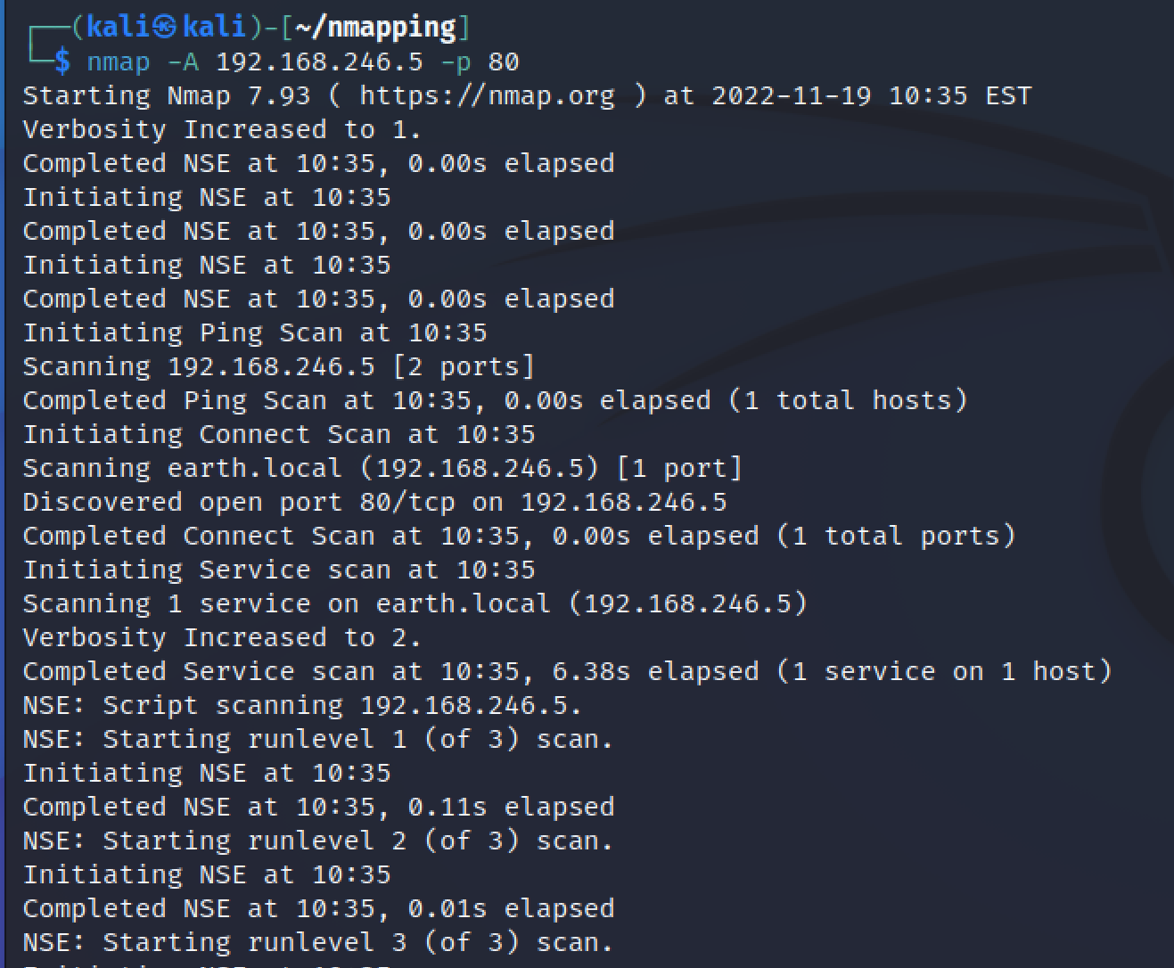 -.nmap - Tämä on oletustiedostomuoto, joka tallentaa melko suoraan nmapin tulostuksen tiedostoon.