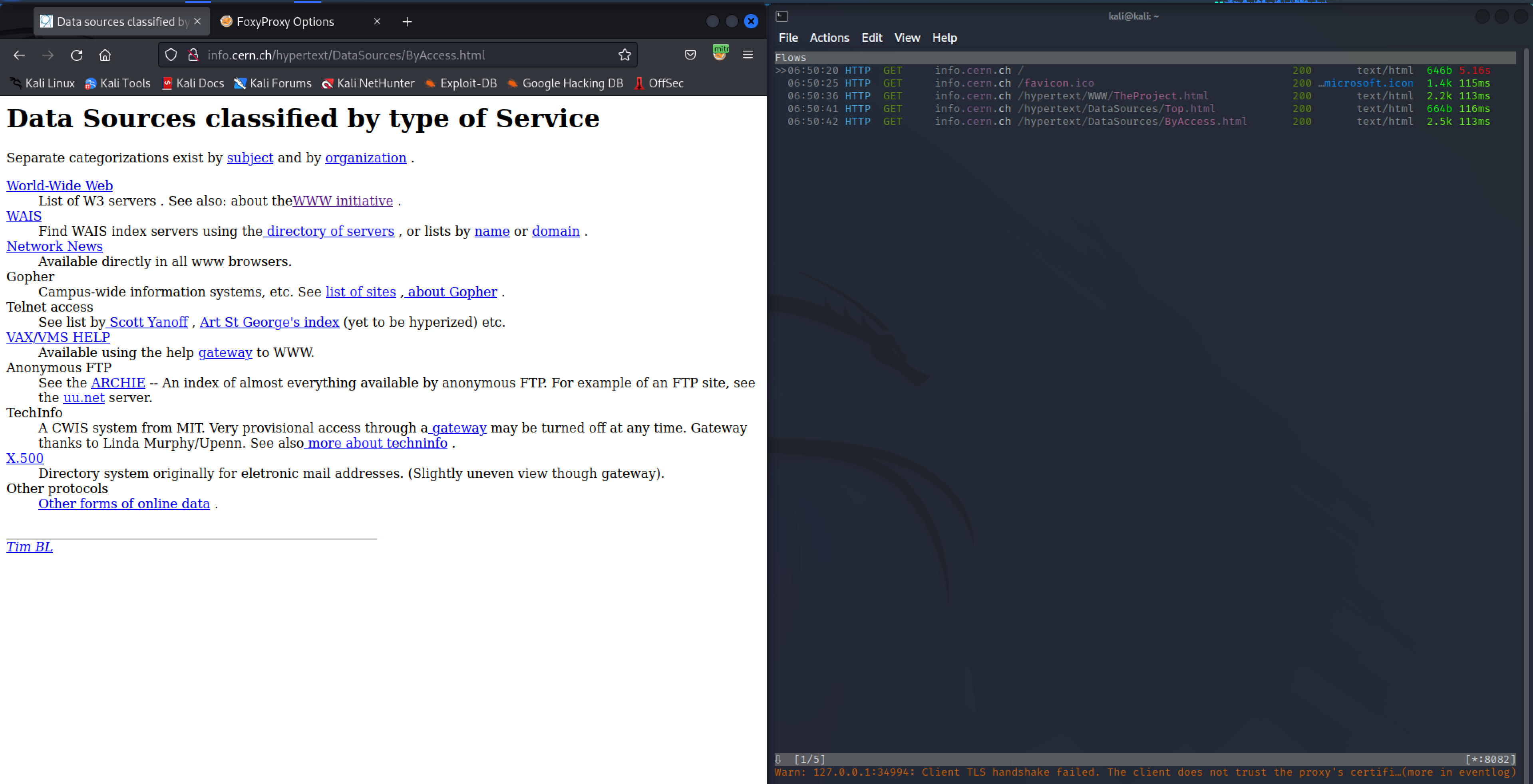 Sen jälkeen pystyin avaamaan sivuja, ja mitmproxy tallensi liikenteen.