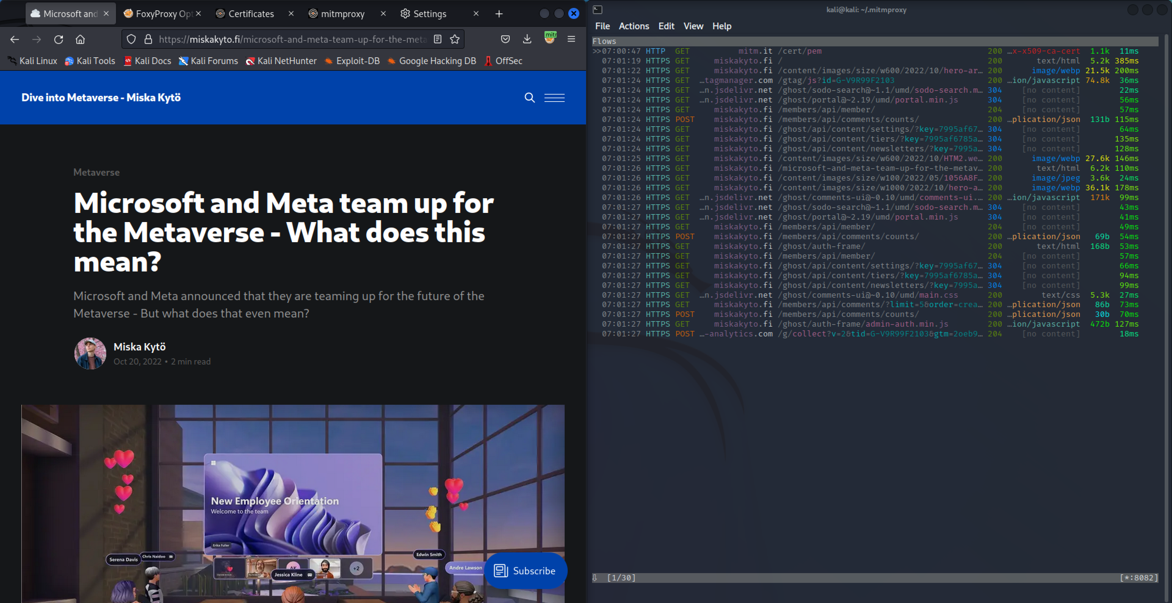 Tämän asennuksen jälkeen SSL-liikenne kulki myös mitmproxyn läpi.