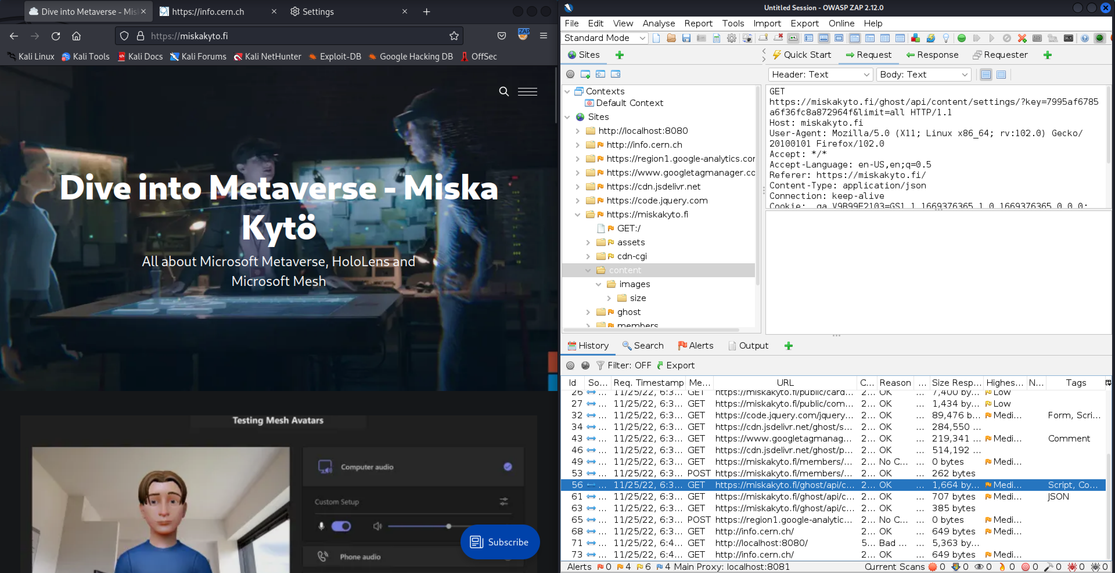 Nyt jos selaamme nettiä, näemme miten ZAP kerää historiaa liikenteestä, joka proxyn läpi kulkee.